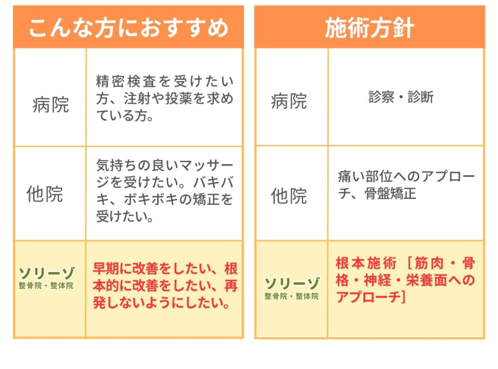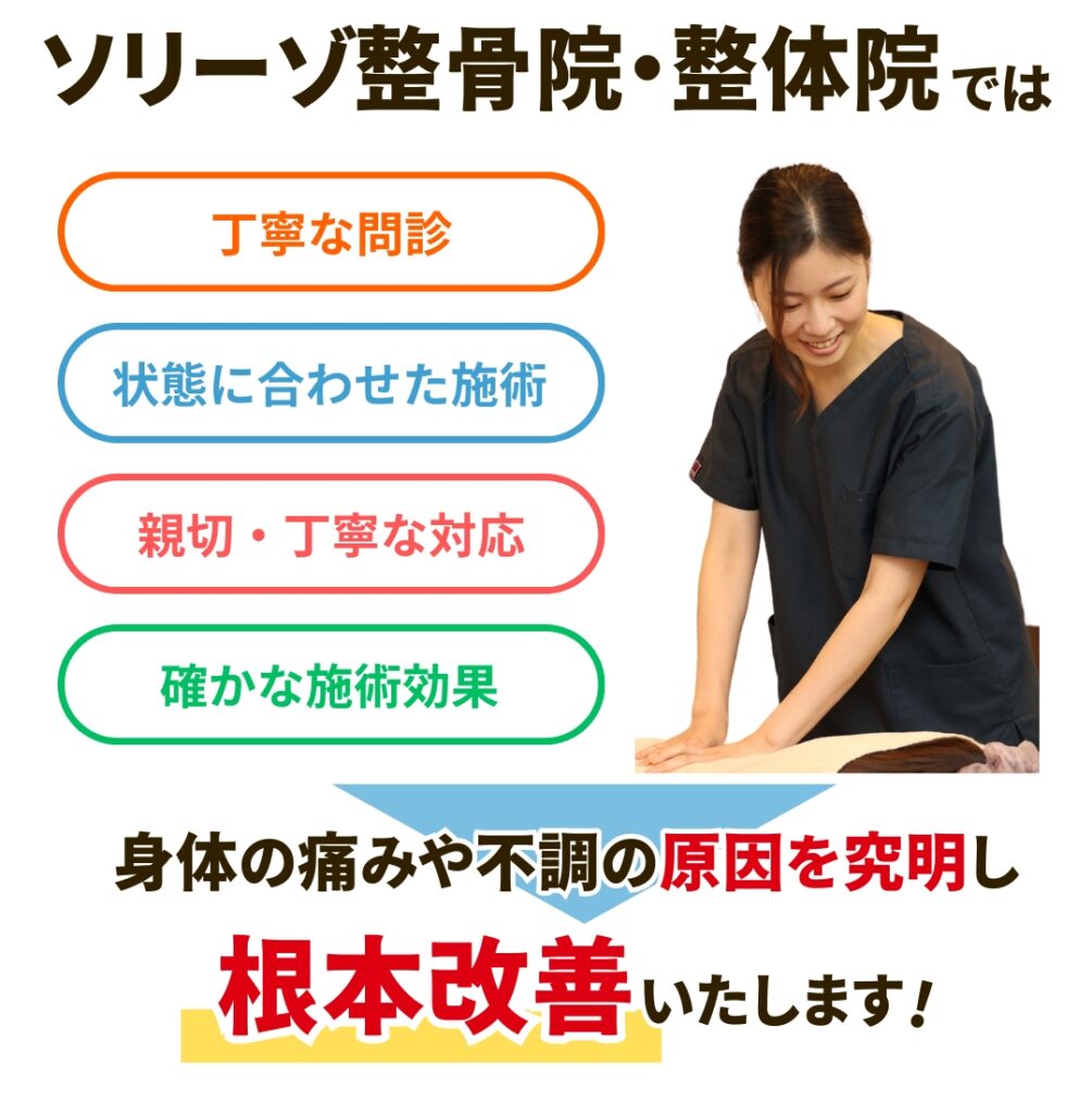 私たちソリーゾ整骨院・整体院では、痛みや不調、お悩みを抱えている方に全力で向き合います。