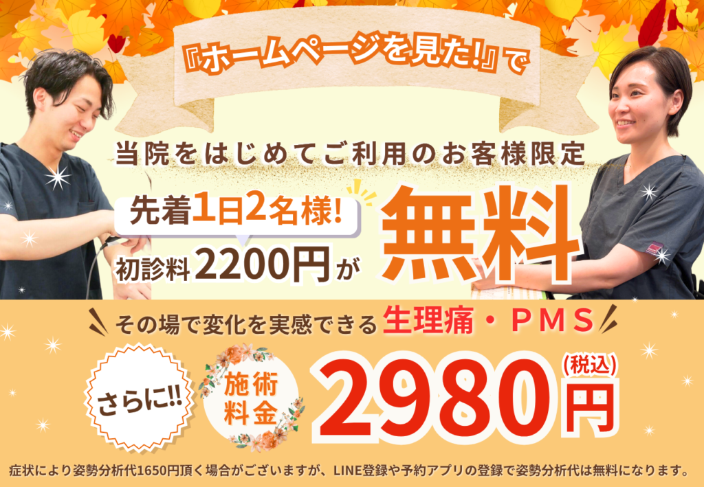 ソリーゾ整骨院・整体院では初めての方でも安心して通えるよう、 ホームページを見た方限定で「初回限定2,980円(税込)」の体験プランをご用意しています。 検査・カウンセリング・施術まですべて含まれていますので、まずはお気軽にお試しください。 詳細な料金や今後のプランについては、初回の際に丁寧にご説明します。