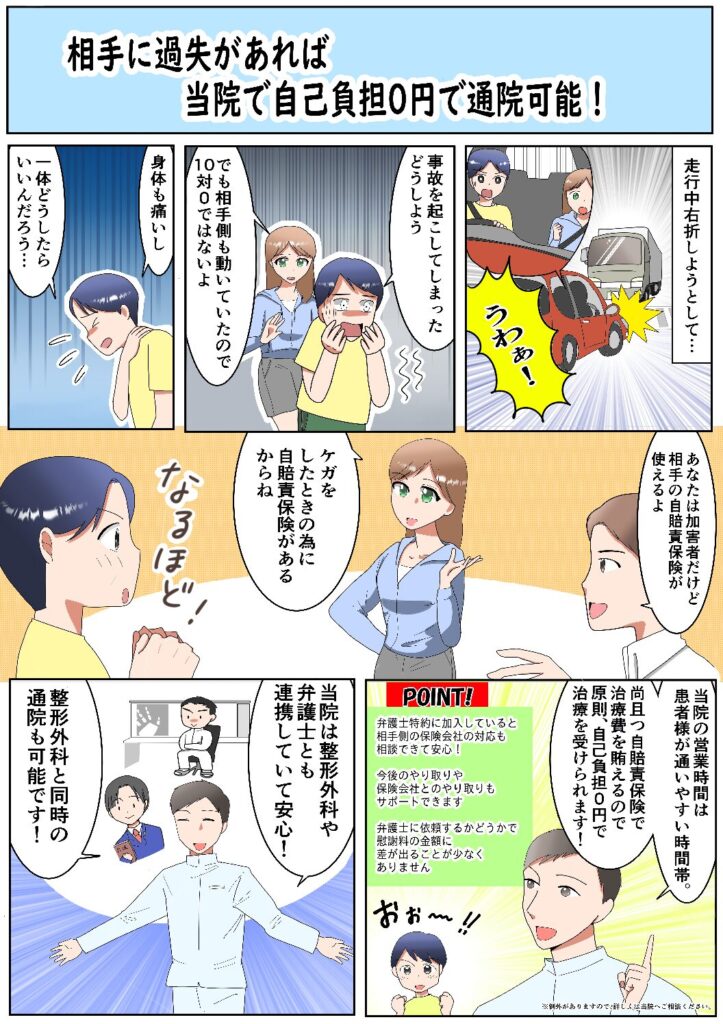 交通事故によるケガで整骨院に通う場合、以下の条件を満たすことで自賠責保険で自己負担金0円で治療を受けることができます。