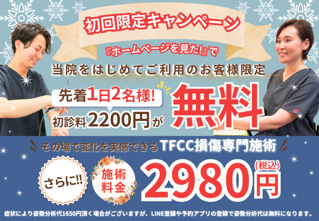 ソリーゾ整骨院・整体院では初めての方でも安心して通えるよう、 ホームページを見た方限定で「初回限定2,980円(税込)」の体験プランをご用意しています。 検査・カウンセリング・施術まですべて含まれていますので、まずはお気軽にお試しください。 詳細な料金や今後のプランについては、初回の際に丁寧にご説明します。