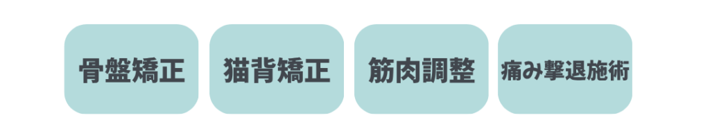 痛みが落ち着いてきたら、筋肉調整や骨盤矯正などを行います。